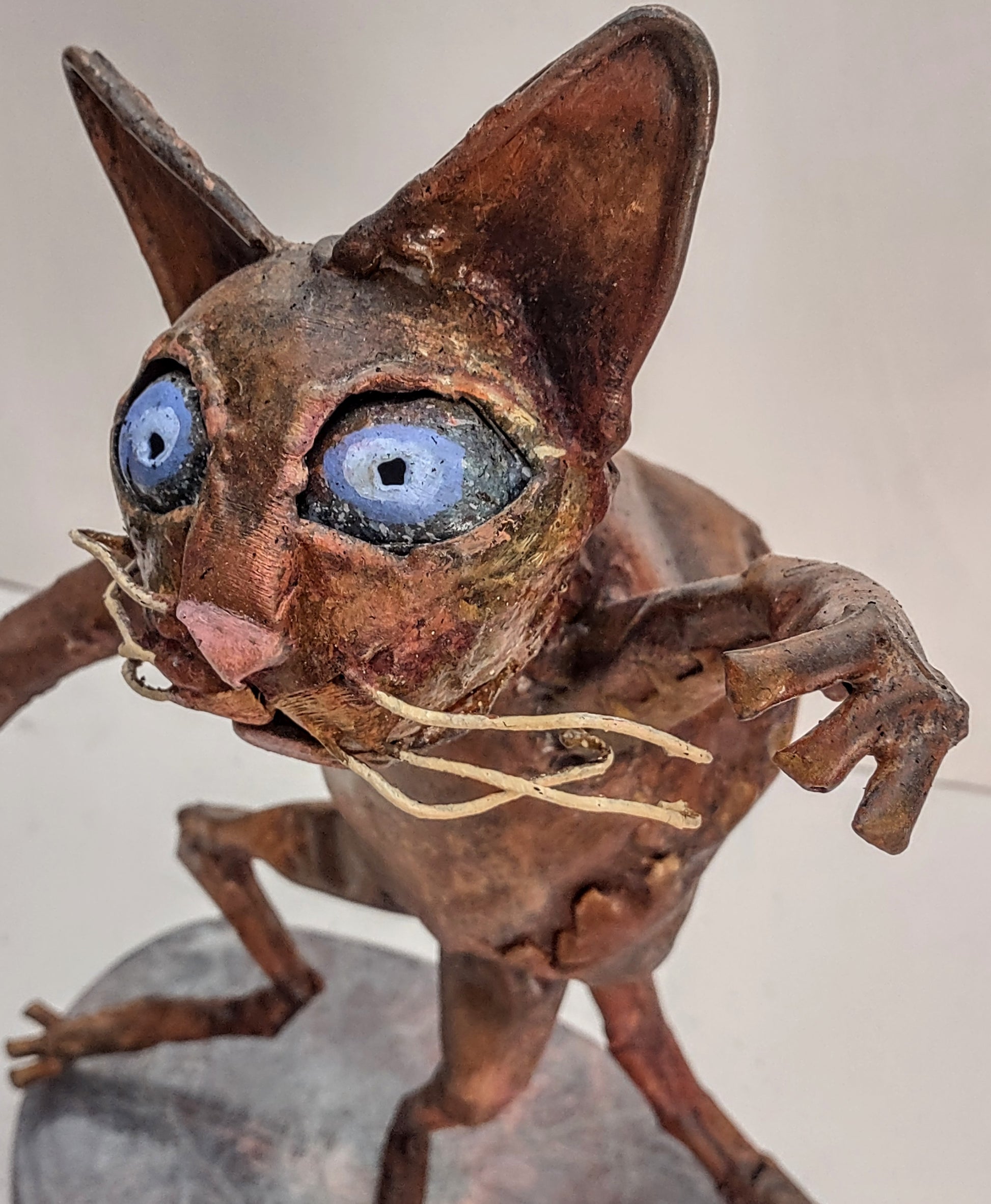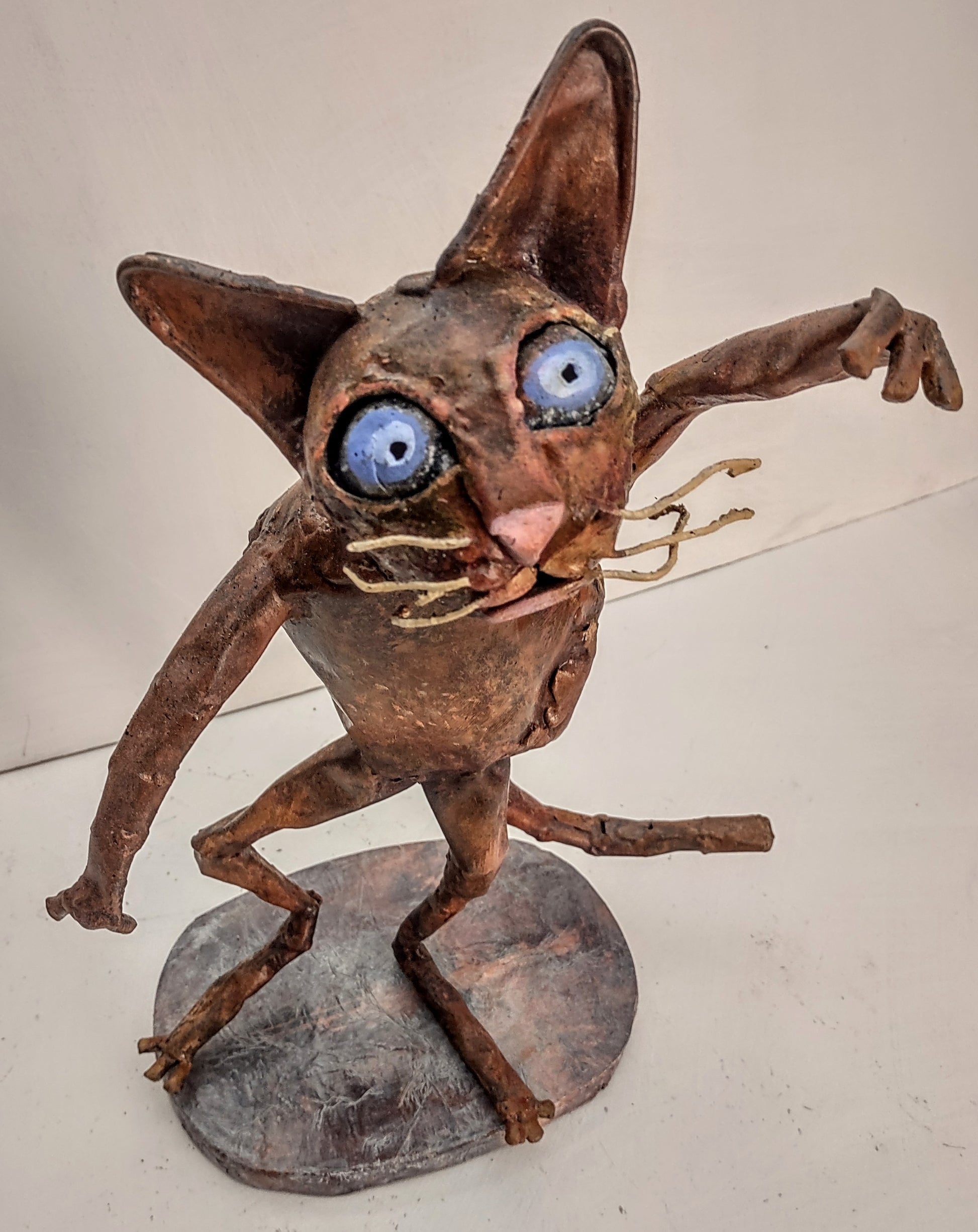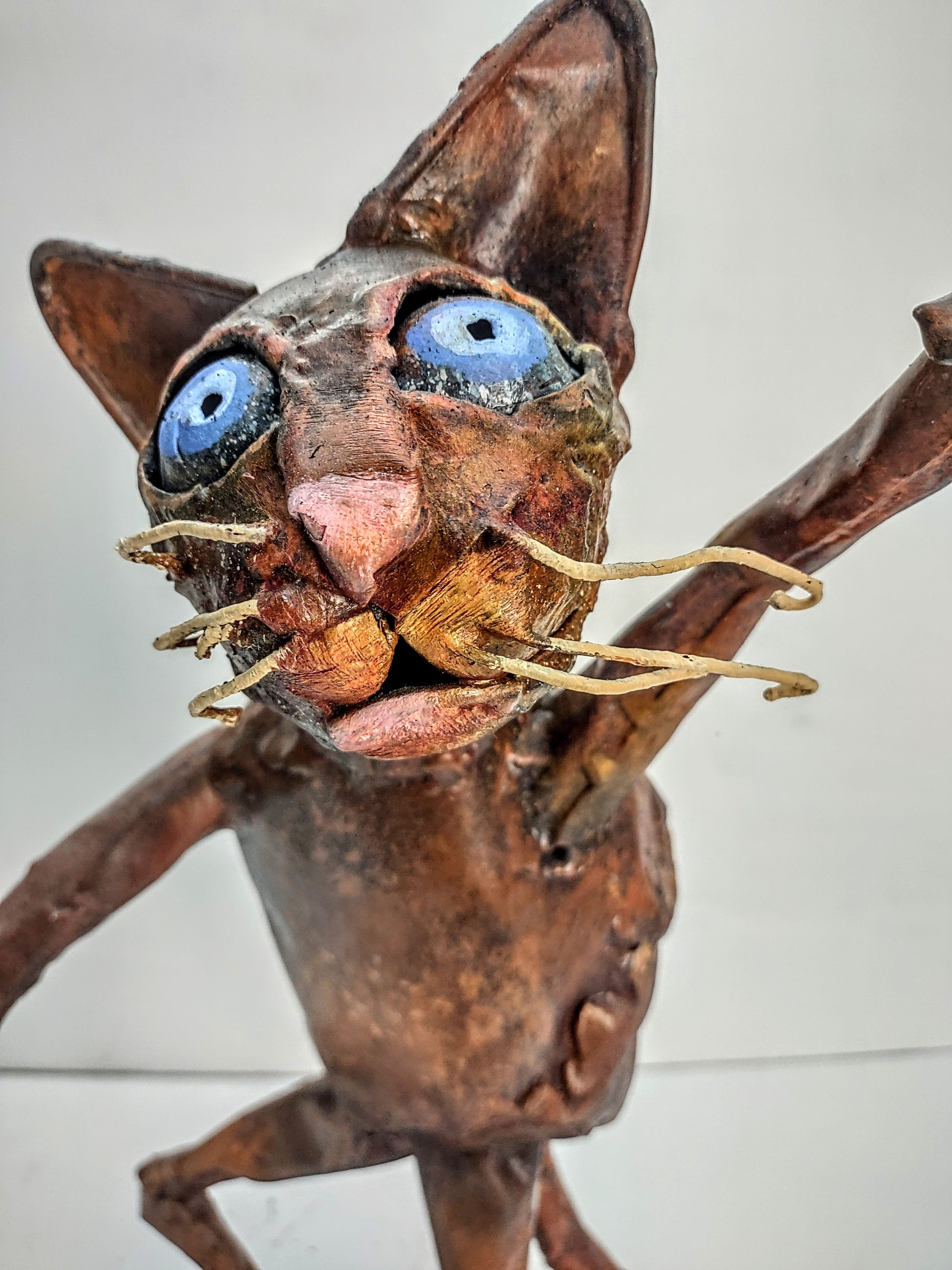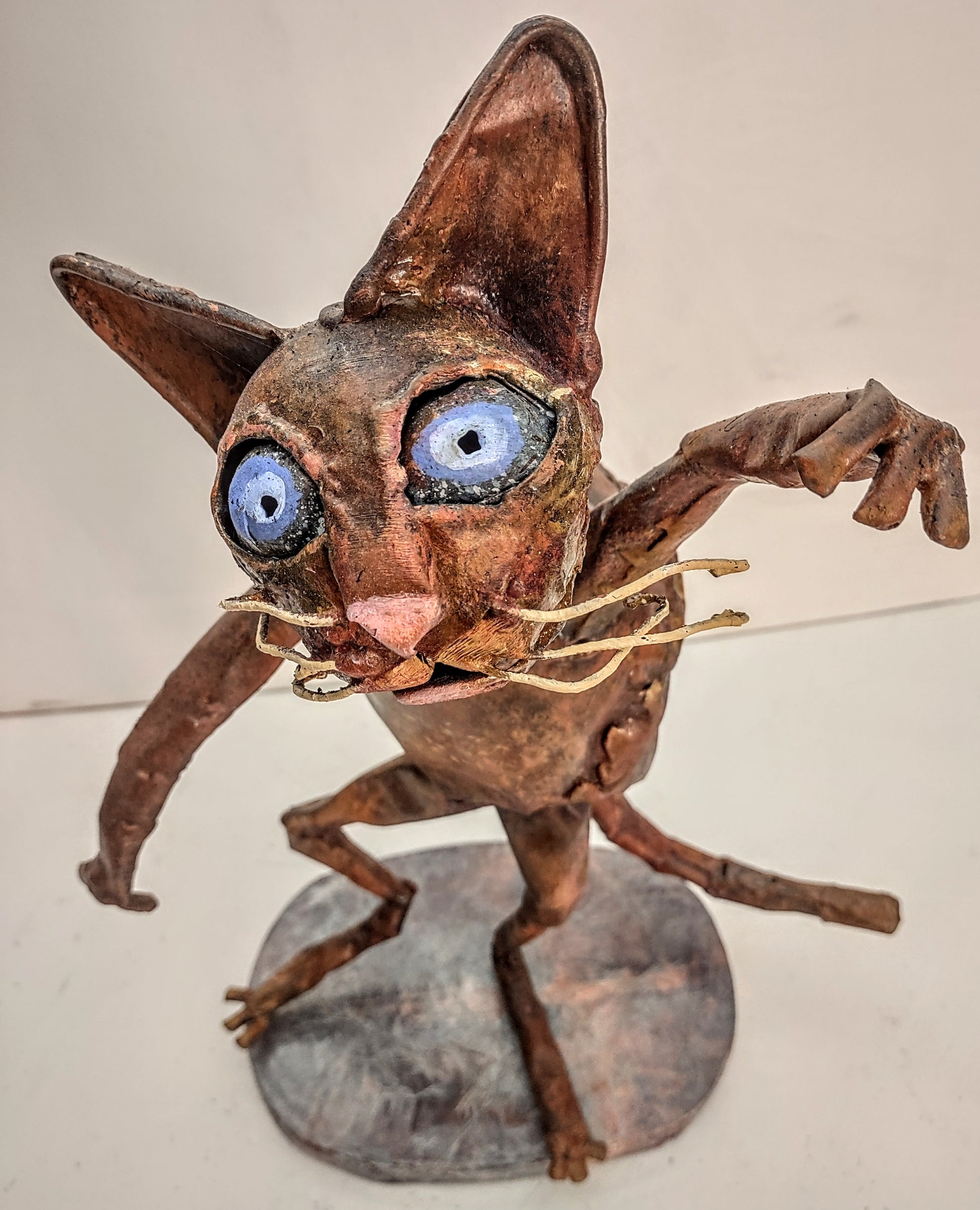 This Cat is entirely made of copper and bronze, by hand, by me, Beau Smith.