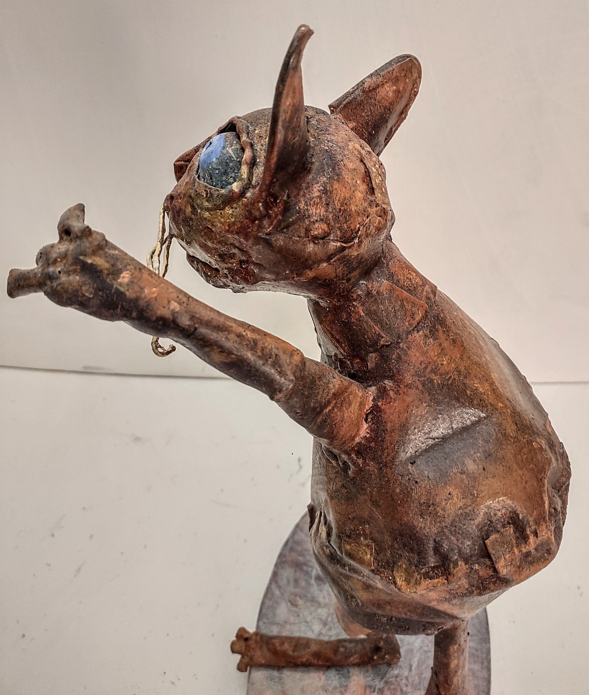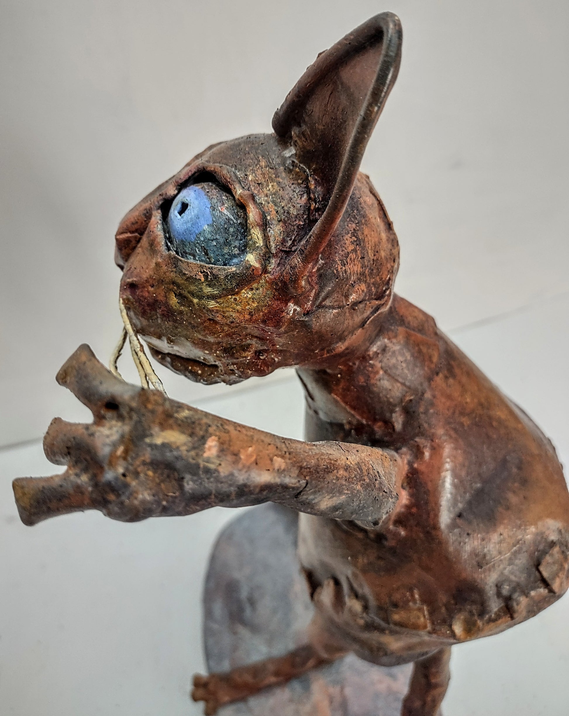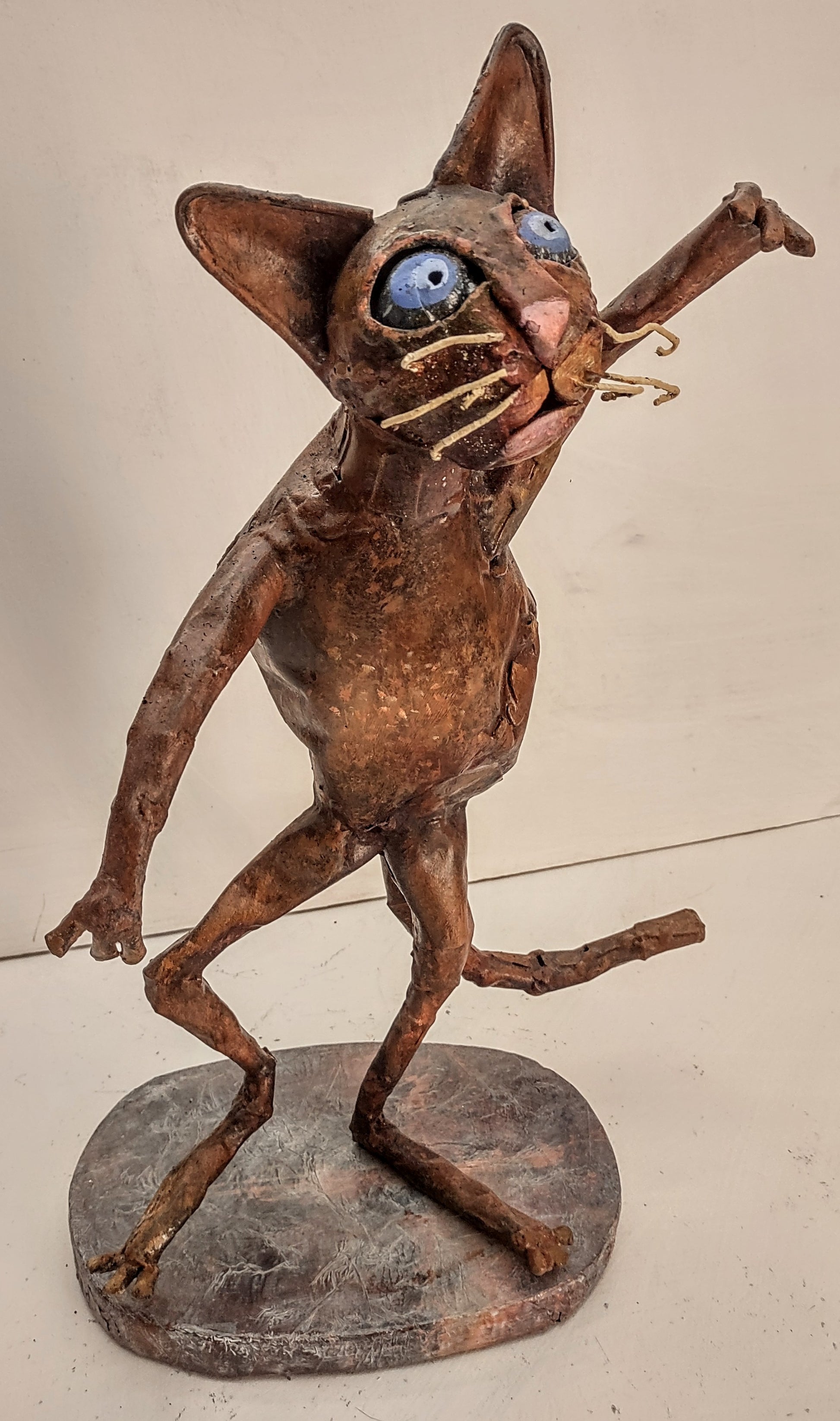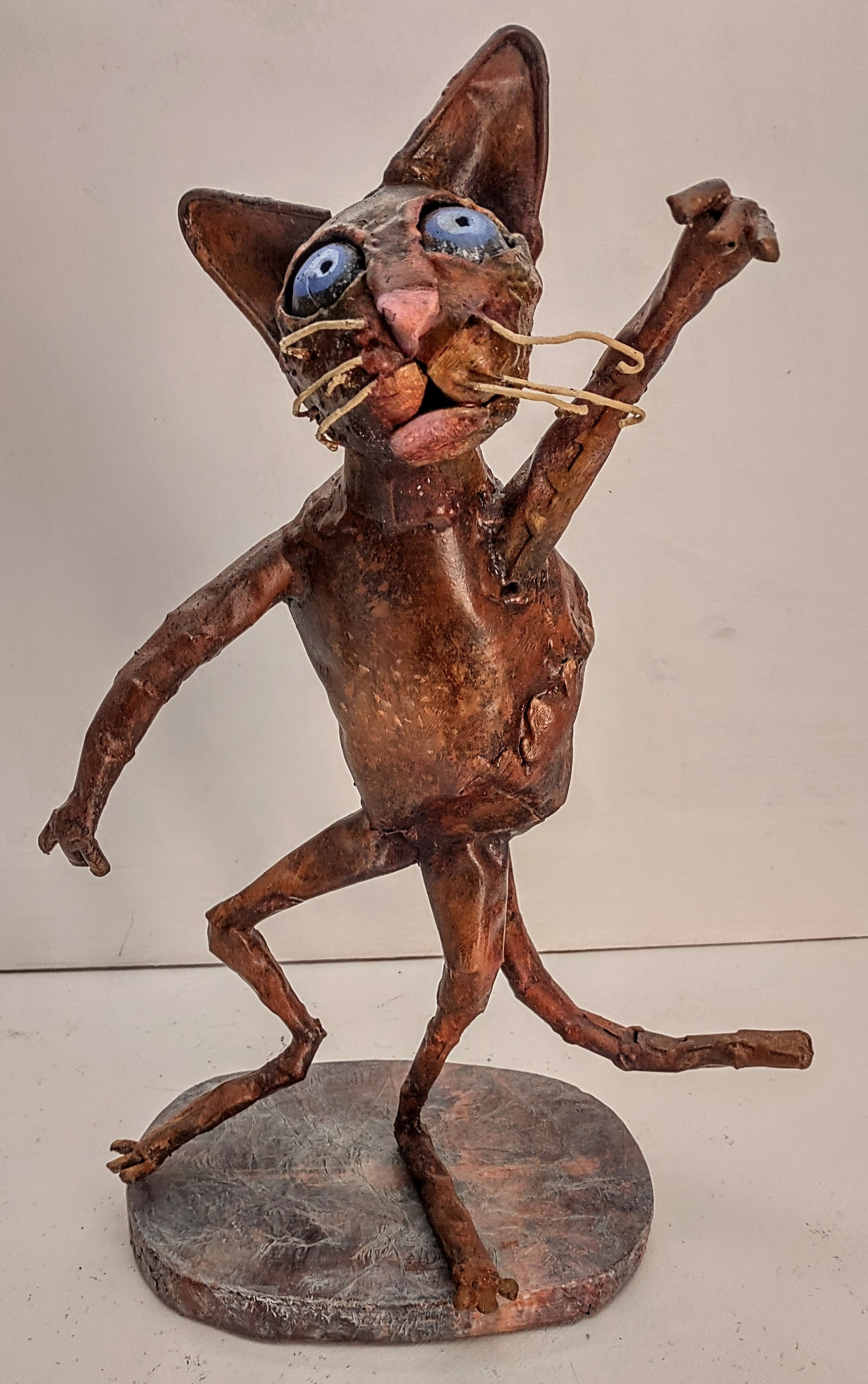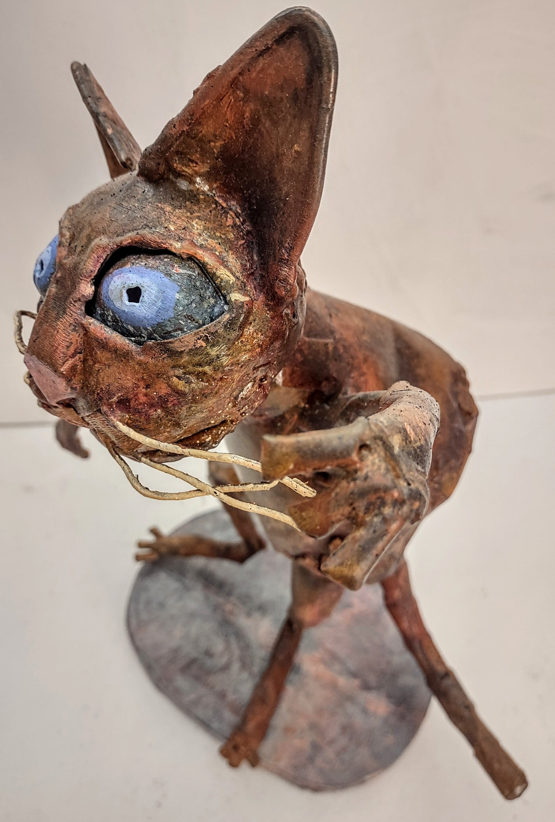 This Cat is entirely made of copper and bronze, by hand, by me, Beau Smith.