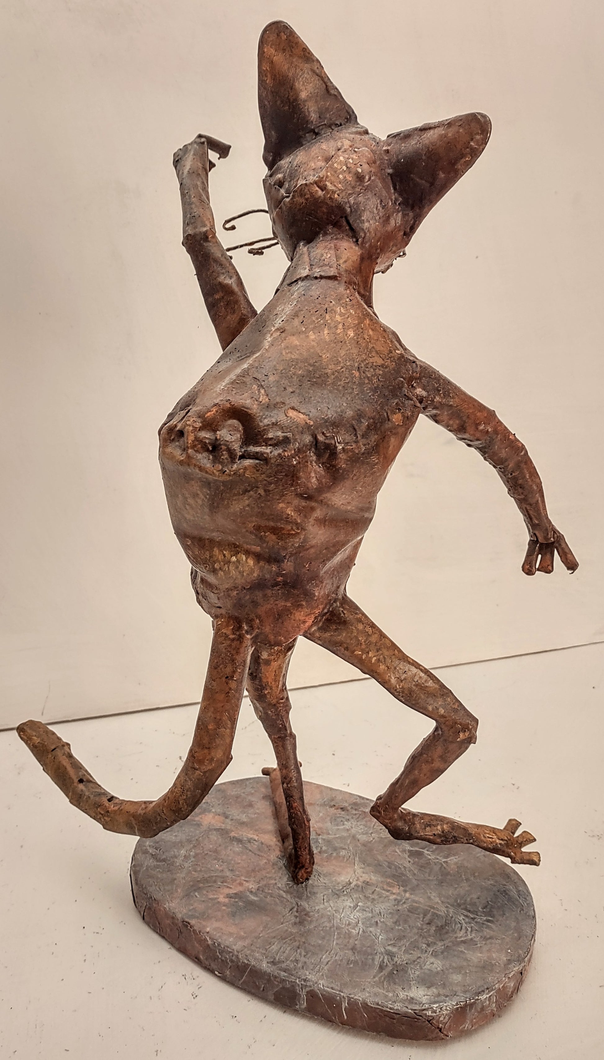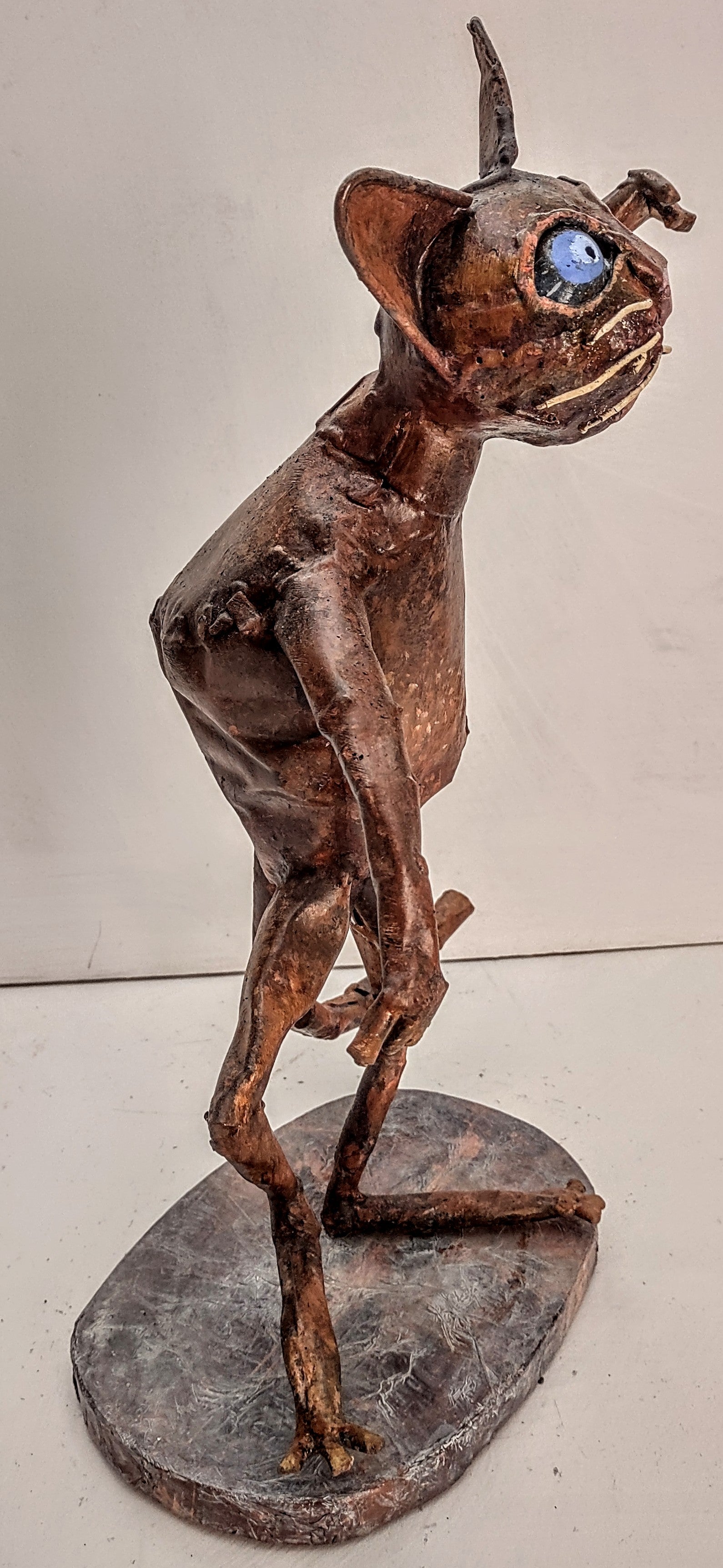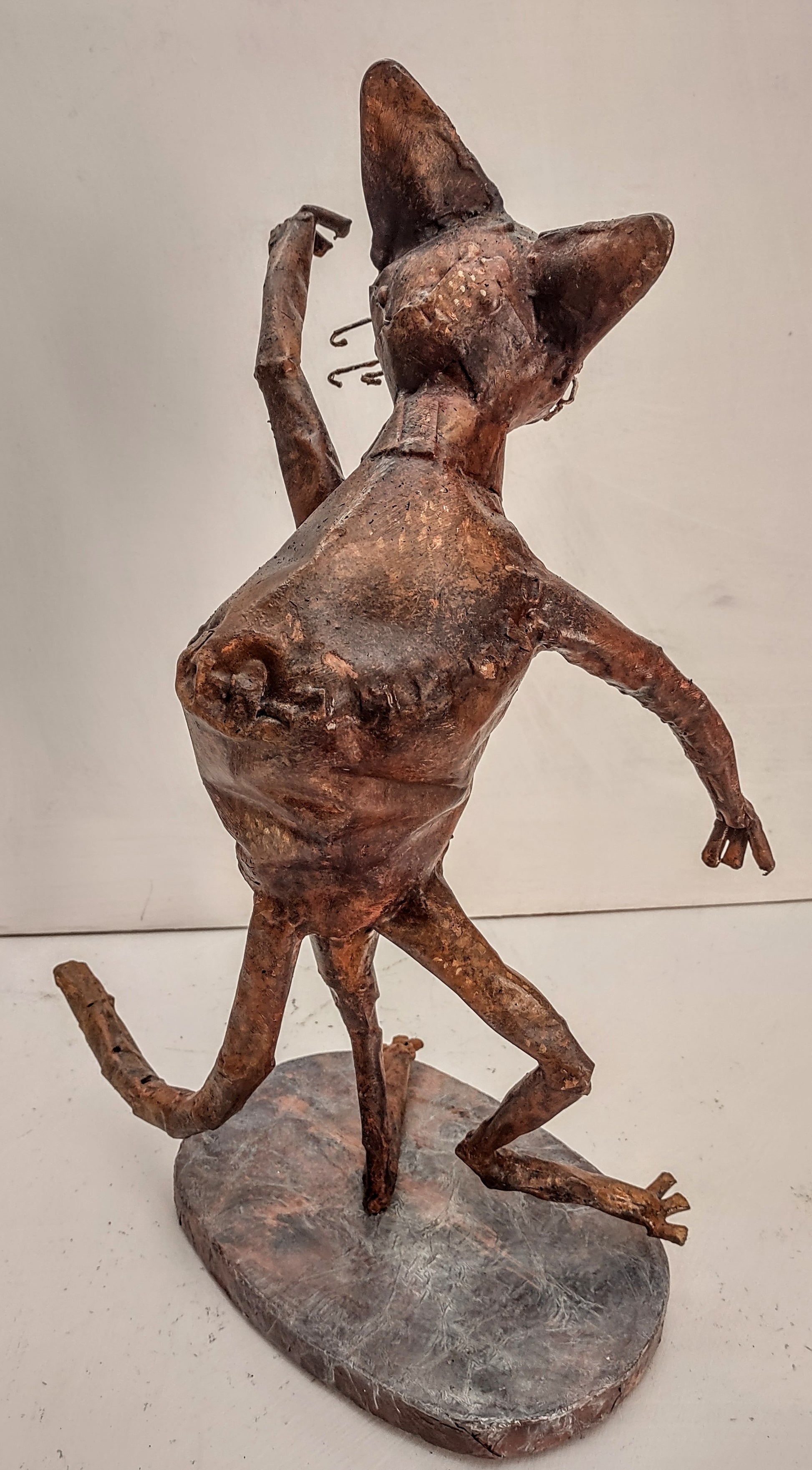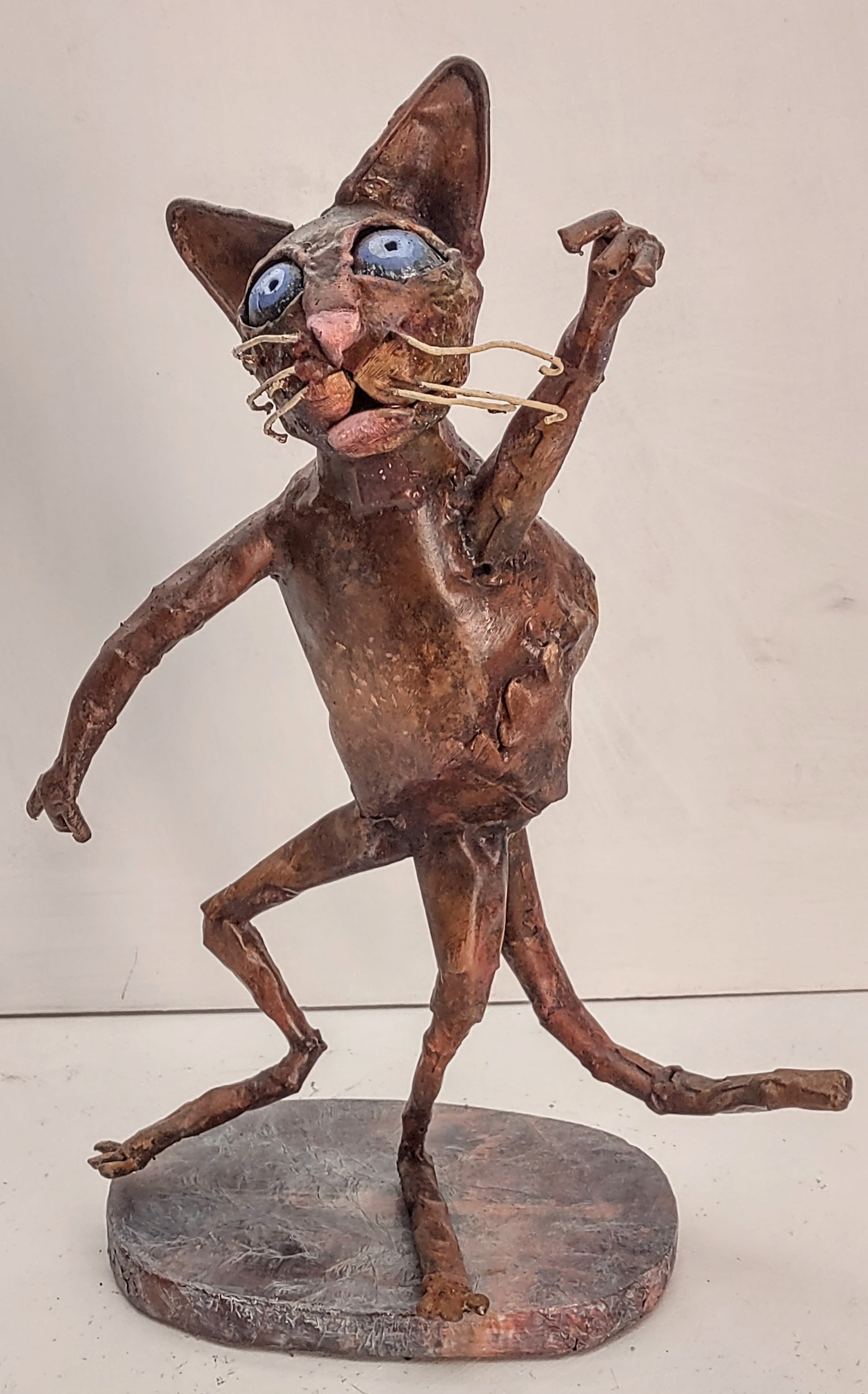This Cat is entirely made of copper and bronze, by hand, by me, Beau Smith.