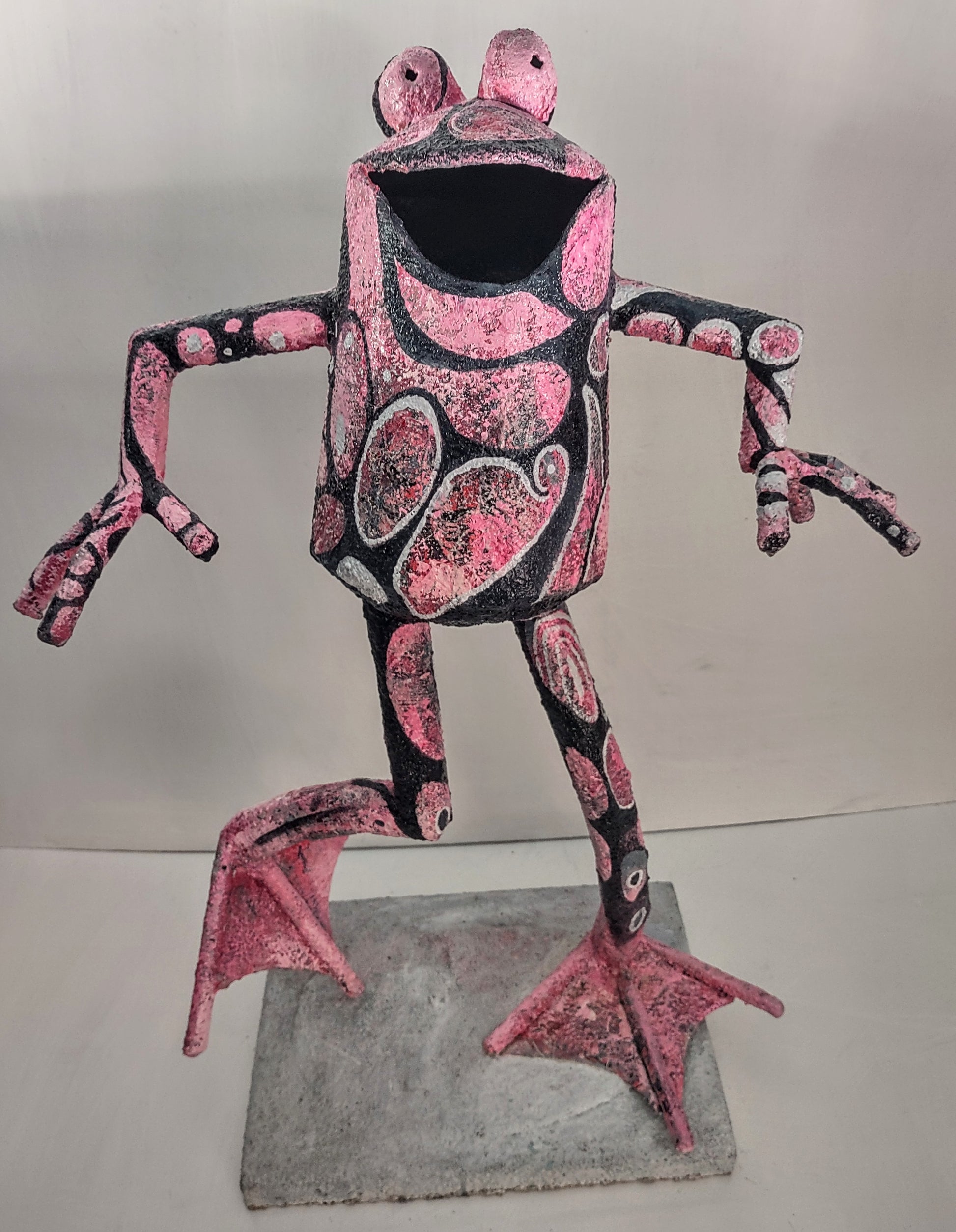 So, the 1st Frog this size I made out of steel, and the 2nd Frog I painted like a painting. How about that? It's a special Frog. Be that as it may, I have priced it very modestly. I know it's valuable. But the world has yet to find that out. Thus, the price is modest in recognition of that sad fact. My loss is your gain. But, believe me, I would be happy for the person who gets it.