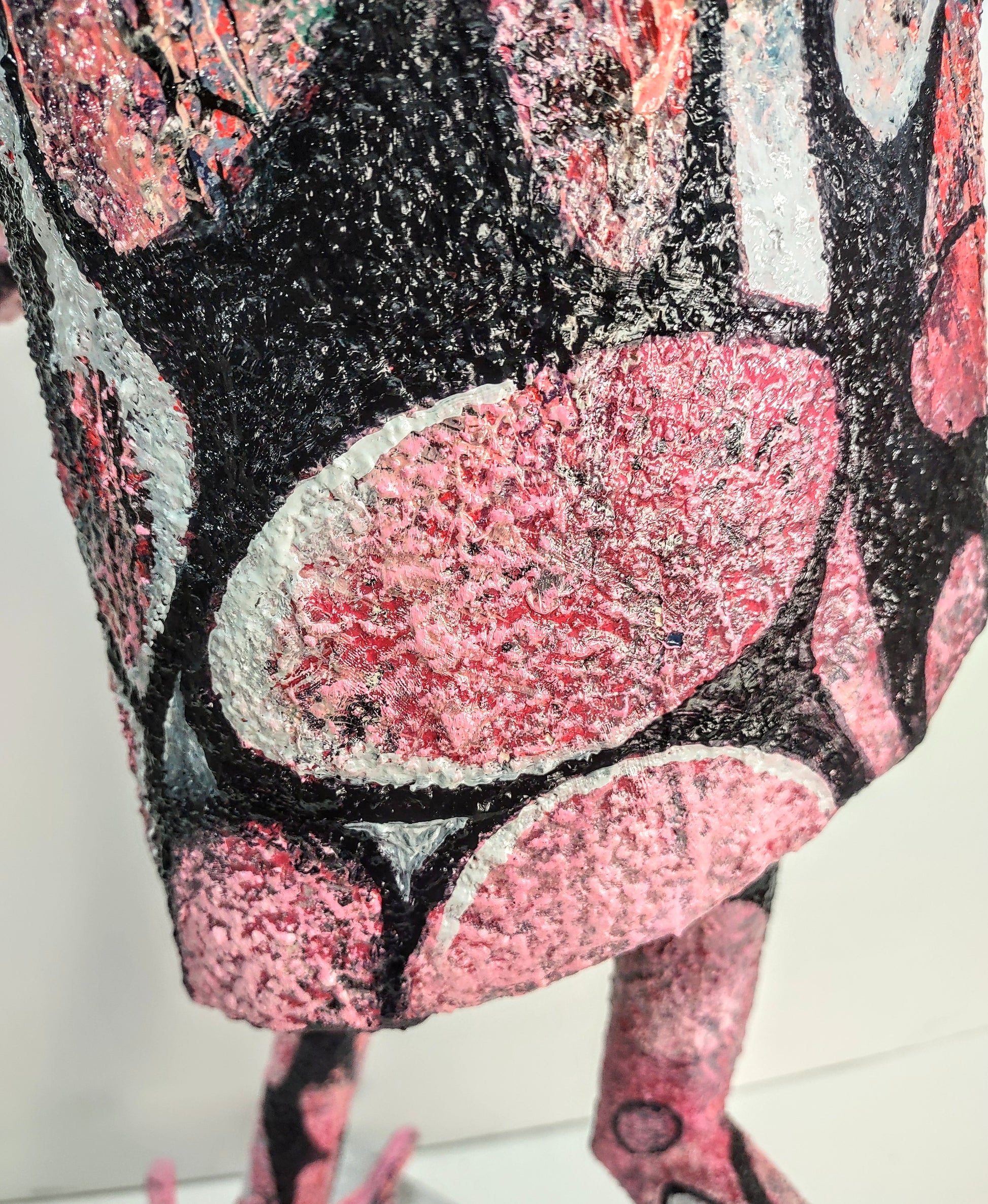 If you put this outside, you will have to wax it every year to help seal it. Although, the layers or paint and sealant already on it are thick. So, at least the first few years, you might not see any rust at all, even for five or so years. But the interior of the sculpture, that's another matter. That's why this is better an inside piece. Also, I like what I did with the paint on it, and it would be sad to lose some of that. Although, it might be an interesting experiment to leave it outside for a year or so and see what that does.